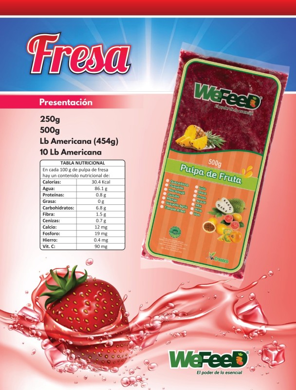 ¡Pura dulzura natural en cada porción! Nuestra Pulpa de Fresa está elaborada con fruta 100% seleccionada, lista para licuar y crear batidos, postres o cócteles irresistibles. Fresca, vibrante y llena de sabor —una explosión de energía y color que alegra cualquier receta. ??